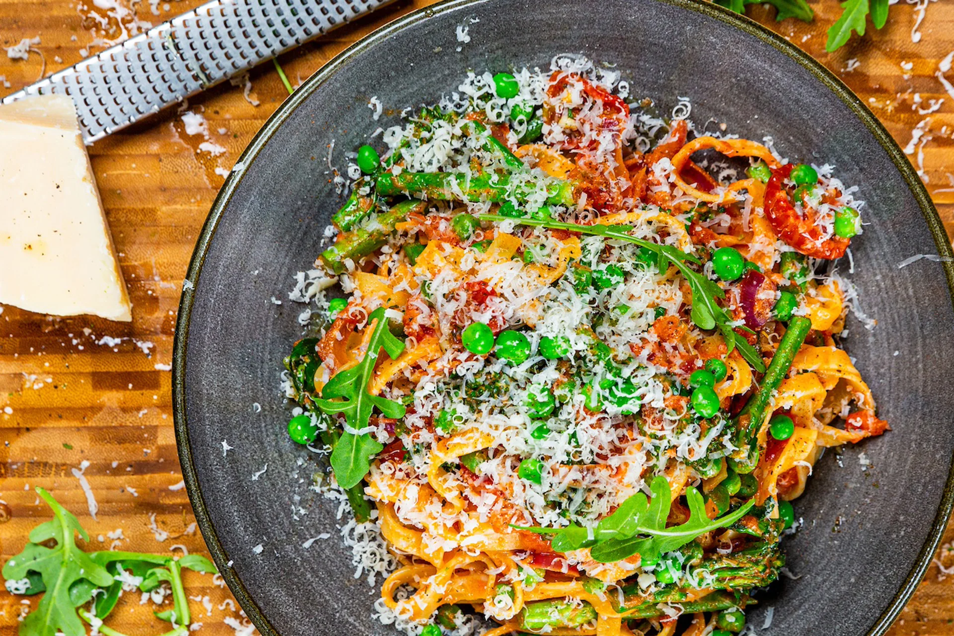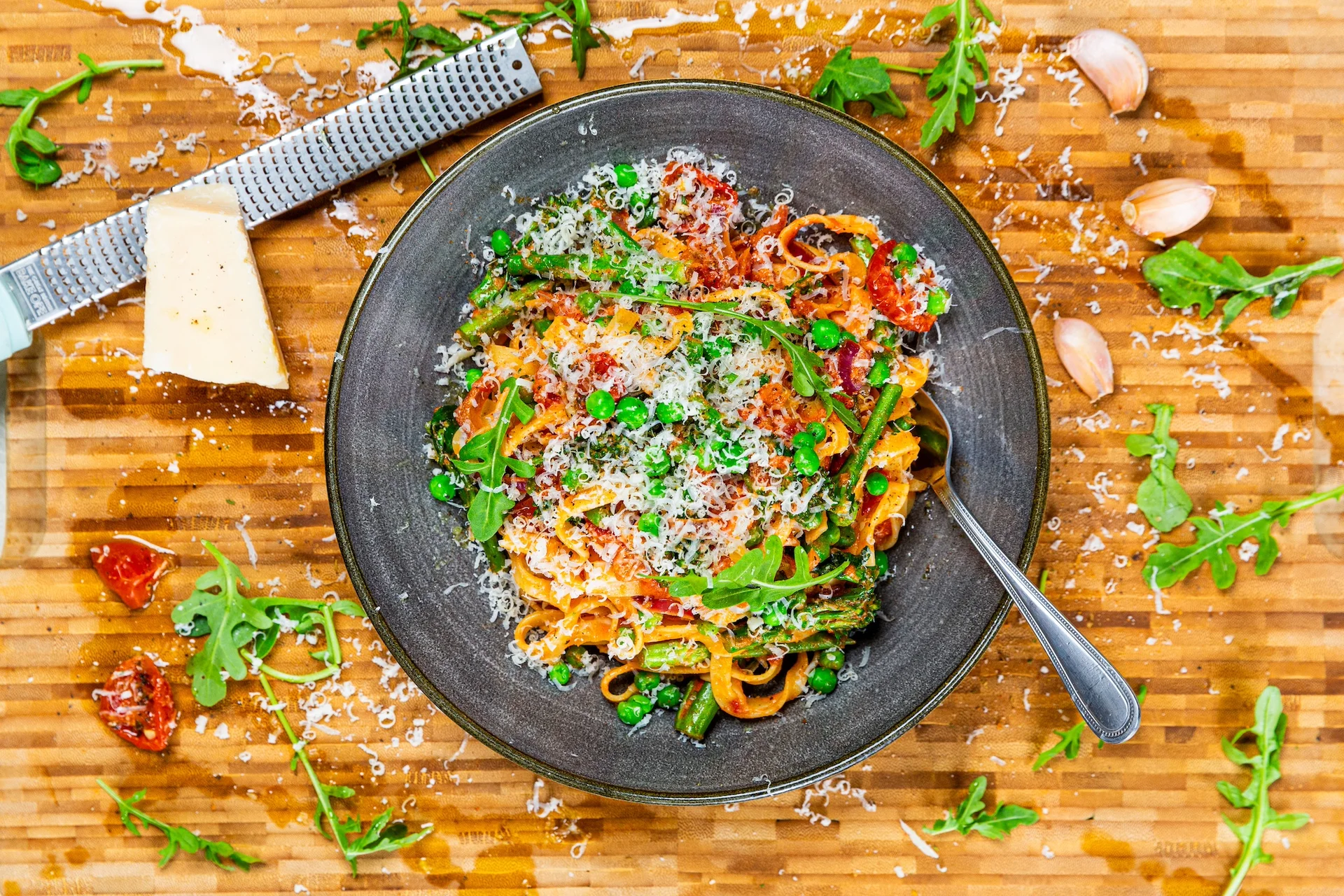 6. Throw in the pasta and serve with chopped parsley and grated cheese.