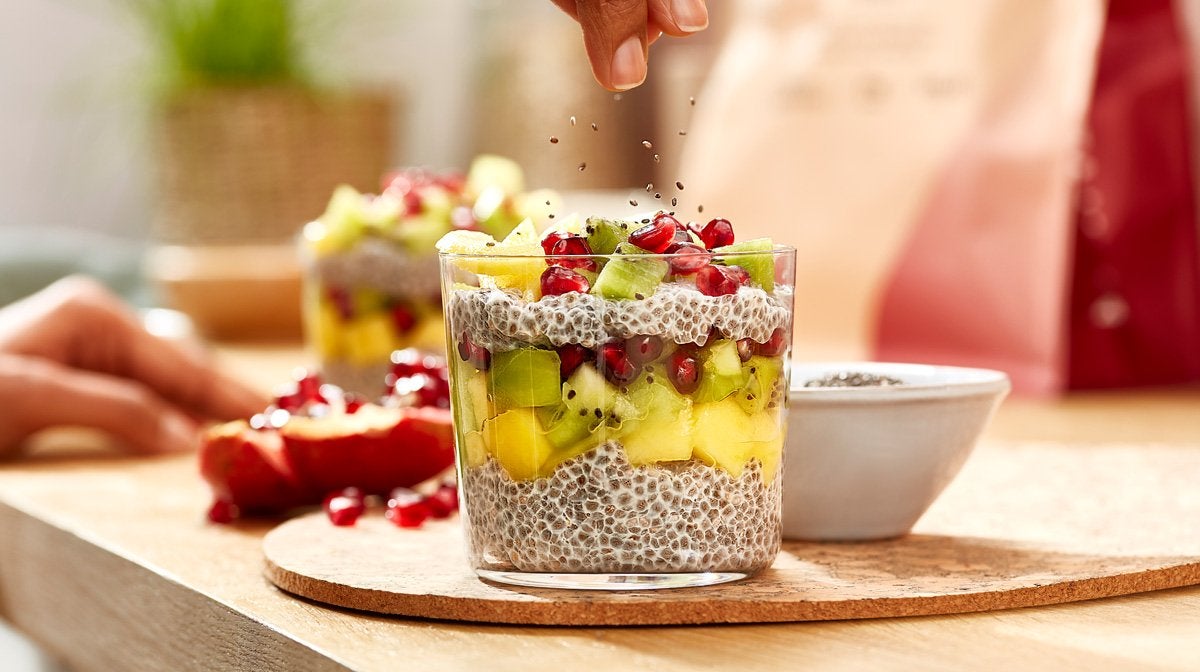 Adding yoghurt or protein powder to make a chia seed pudding makes it a great high-protein and well-rounded breakfast.