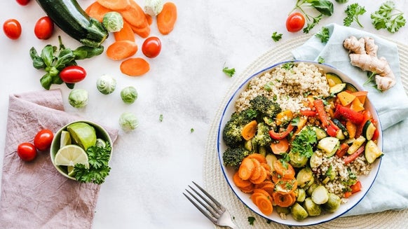 At meals, visually set up your plate to be half filled with fruit and veg — more veggies if you can. Use another quarter of the plate for a lean protein source, and the last quarter for a starchy food or carb. This method automatically helps control portions on focus on protein and produce.
