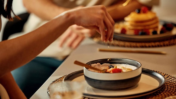 Soluble fibre can slow digestion and keep us feeling fuller, longer, while insoluble fibre can speed up digestion. Fermentable (or soluble) fibres support the healthy bacteria in our gut and insoluble fibres help support regularity.1