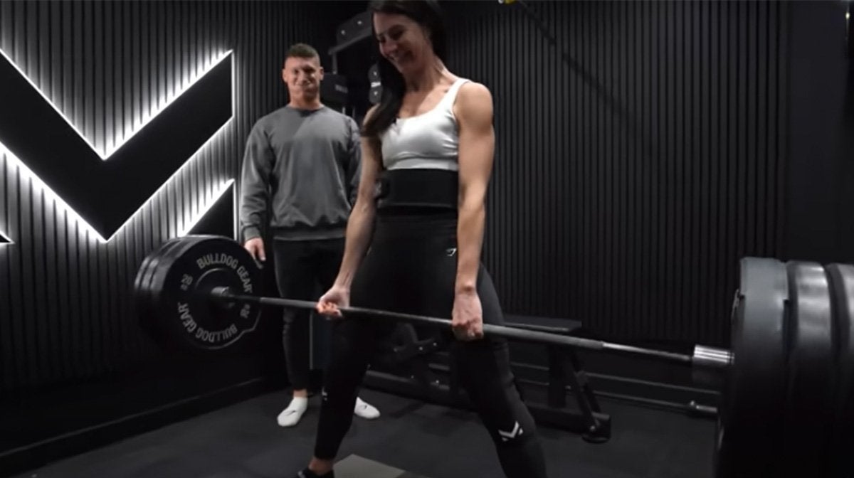 First up, the “before” session. Sarah completed her one-rep max — the heaviest weight she could lift for one complete rep — for squat, bench press and deadlift.