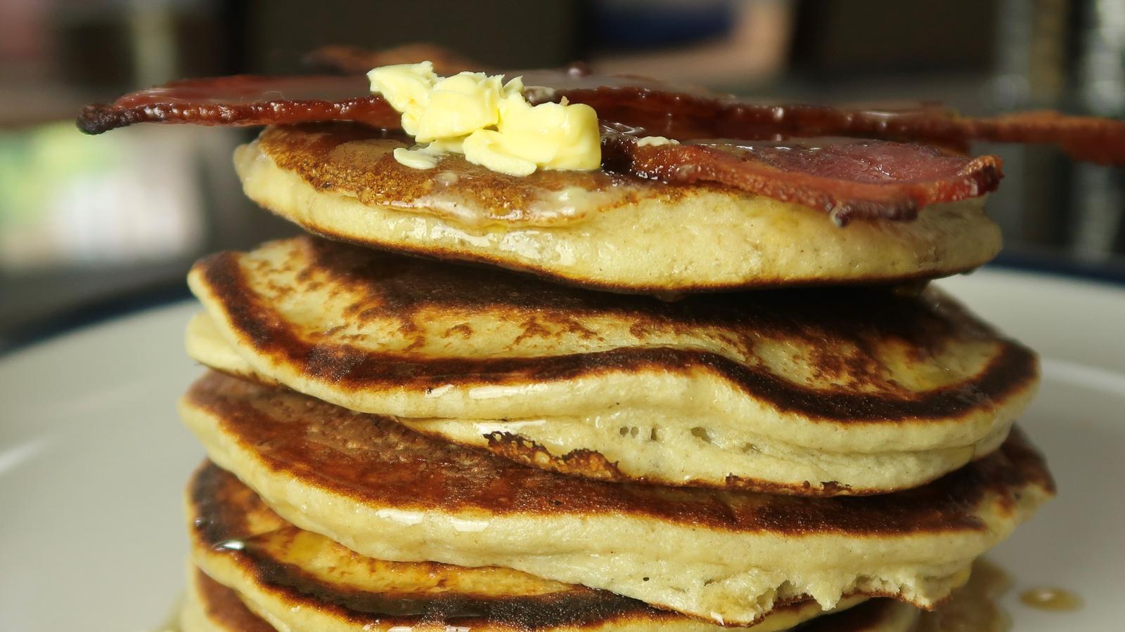 The world is your oyster when it comes to toppings, but if we’re sticking to American-style here, then it’s got to be a whole load of maple syrup, with either classic blueberries or sizzling streaky bacon.
