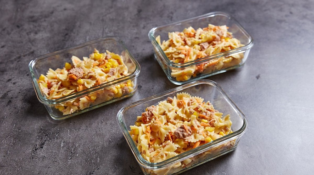 To keep everything fresh, make sure you store your prepped meals in airtight containers and refrigerate as soon as the food has cooled. The salad should keep well for 3-4 days in the fridge. But avoid freezing, as the pasta can become mushy.