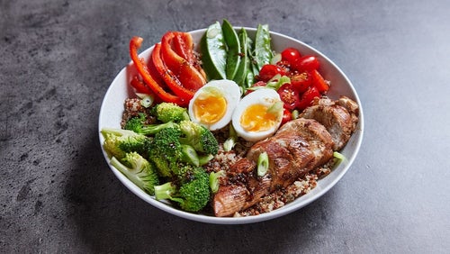 Loaded full of veggies and protein, this bowl makes you feel good from the inside out. And it requires next to no prep, once your chicken is cooked you just need to get chopping.