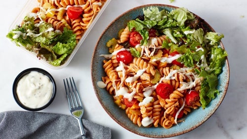 Another spicy little number for your chicken meal prep — this pasta salad is loaded with flavour and packed with protein.