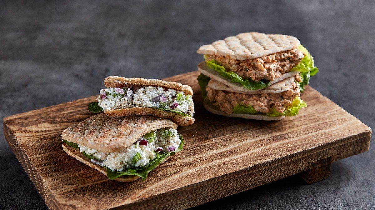 Not only are these sandwiches quick and easy to make, but you also get to choose between two delicious options: creamy tomato chicken or classic chicken salad. Plus, both are packed with protein to keep you fuelled throughout the day.