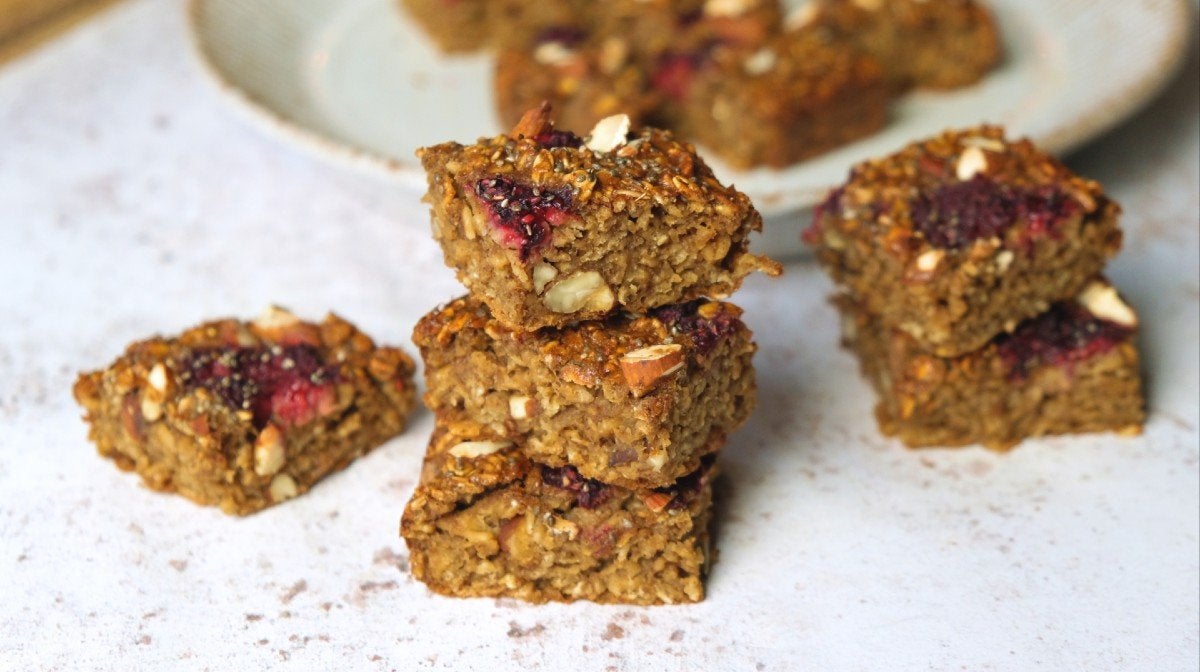 That’s why these delicious grab-n-go breakfast bars from Niall Kirkland are a game-changer. Simply make up a batch on Sunday night (or whenever you have a spare hour in the week) and you’ll be set with 16 fruity raspberry and oat treats to keep you fuelled the whole week through.