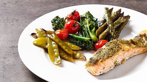 If you're looking to increase your intake of fish, try our salmon pesto tray bake.