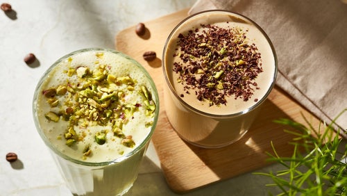 Matcha whey protein contains caffeine so it saves having to add brewed coffee to the smoothie.